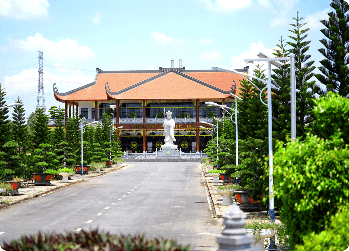 Quy hoạch theo thuyết Ngũ Phúc với hình bàn tay Phật đỡ đóa Kim Liên ôm trọn Thiền tự, Hoa viên Bình An là vùng Đất Phúc mà khó nơi nào sánh được. Phong cảnh hoa viên Bình An đẹp như lạc vào vườn Thượng Uyển với những hàng cây Sala vô ưu, điểm xuyến bởi trăm loài hoa khoe sắc mỗi mùa, cùng những hồ cá Koi Nhật Bản được tôn lên bởi những bồn cây bonsai quý giá.