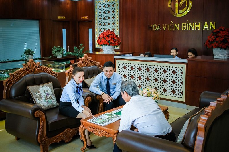 Tại Nghĩa trang Hoa viên Bình An bạn có thể tham khảo rất nhiều dịch vụ chất lượng và tiện ích như: Chôn cất, dịch vụ lưu trữ tro cốt, hỏa táng, thiết kế, thi công xây dựng mộ, hỗ trợ thăm viếng và quản lý khu lăng mộ từ xa,… Khách hàng mua mộ phần tại đây có thể lựa chọn xây dựng mộ đơn, mộ đôi và mộ gia tộc theo nhiều tiêu chuẩn khác nhau. Với đội ngũ nhân viên nhiệt tình, tư vấn tận tâm, khách hàng sẽ có được công trình lăng mộ ưng ý nhất.