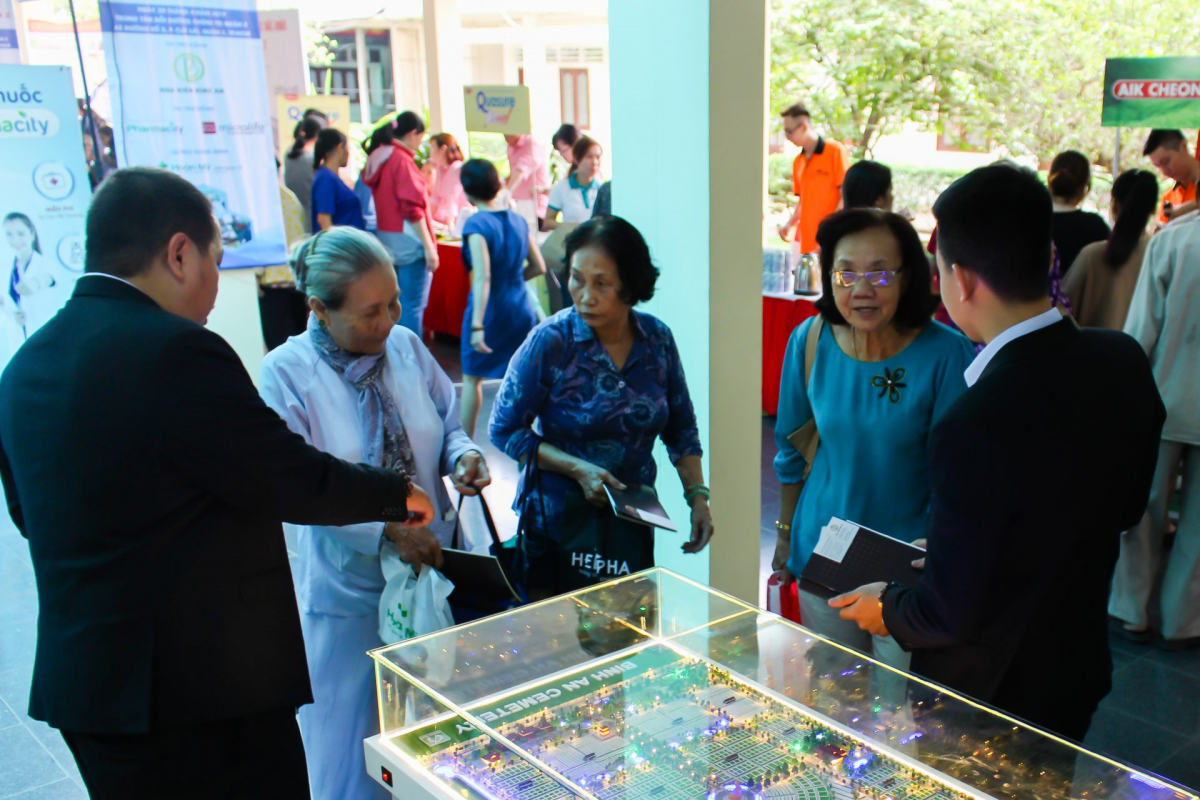 Đặc biệt trong ngày hội, các cô các chú đều quan tâm và đánh giá rất cao mô hình của Công viên nghĩa trang cao cấp Hoa Viên Bình An.