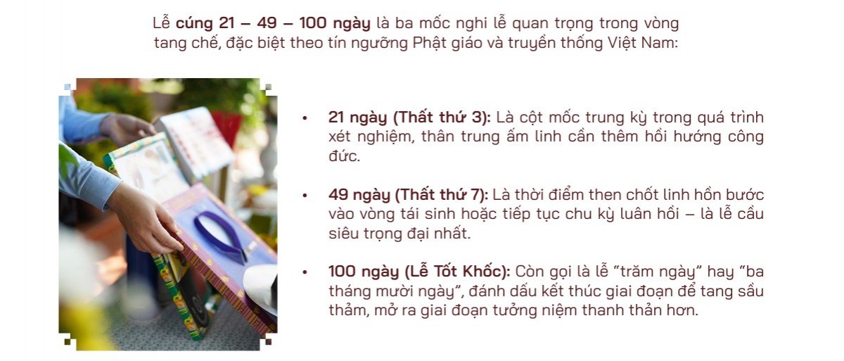 Trong văn hóa người Việt, đặc biệt là theo tín ngưỡng Phật giáo, các lễ cúng 21, 49 và 100 ngày sau khi mất là nghi thức thiêng liêng nhằm cầu siêu cho người đã khuất. Việc chuẩn bị mâm lễ cúng đúng ngày, đúng nghi thức không chỉ thể hiện đạo hiếu của con cháu mà còn là cách giúp linh hồn người thân được siêu thoát, an nghỉ thanh thản.