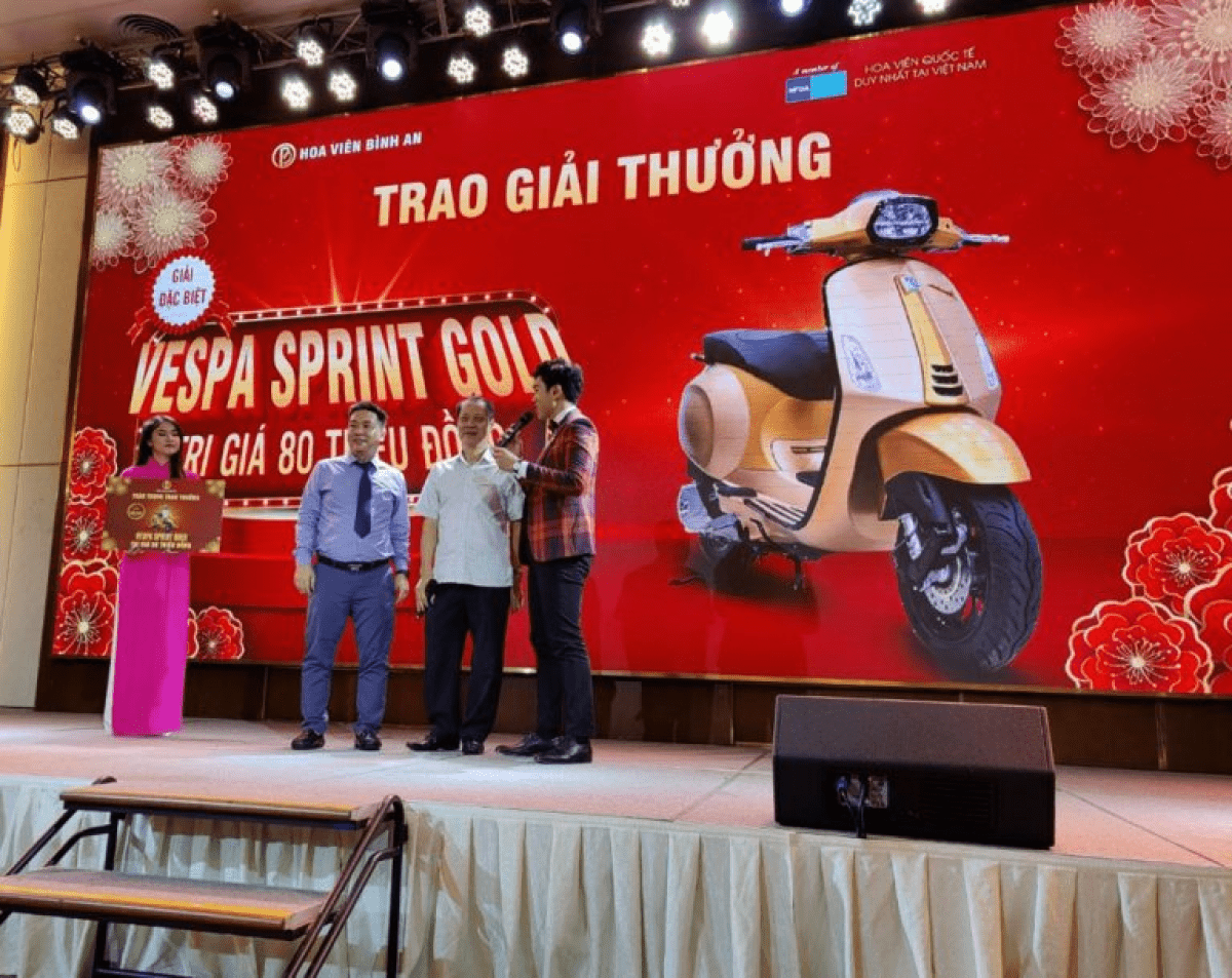 Khách hàng may mắn trúng thưởng xe Vespa Sprint Gold tại sự kiện