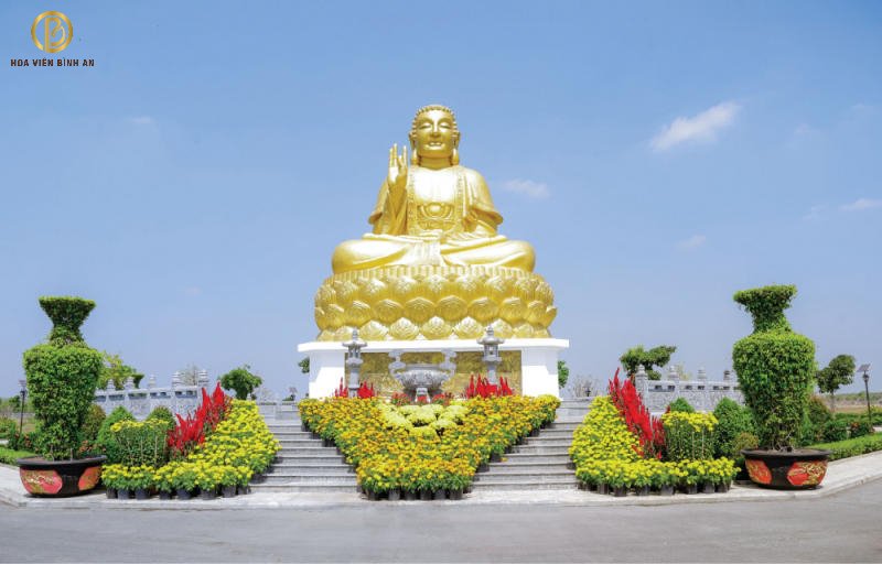Bao quanh những công trình vĩ đại đó là cảnh sắc thiên nhiên tươi mát với rừng cây sala đầy quả mọng, vườn trăm hoa khoe sắc nở rộ. Thật không ngoa khi ví Hoa Viên Bình An như chốn bồng lai tiên cảnh, là nơi giao thoa hòa hợp giữa 2 thế giới âm dương. Giúp con cháu có một nơi để về tụ họp, tưởng nhớ về tổ tiên và cầu mong những điều tốt đẹp trong tương lai.